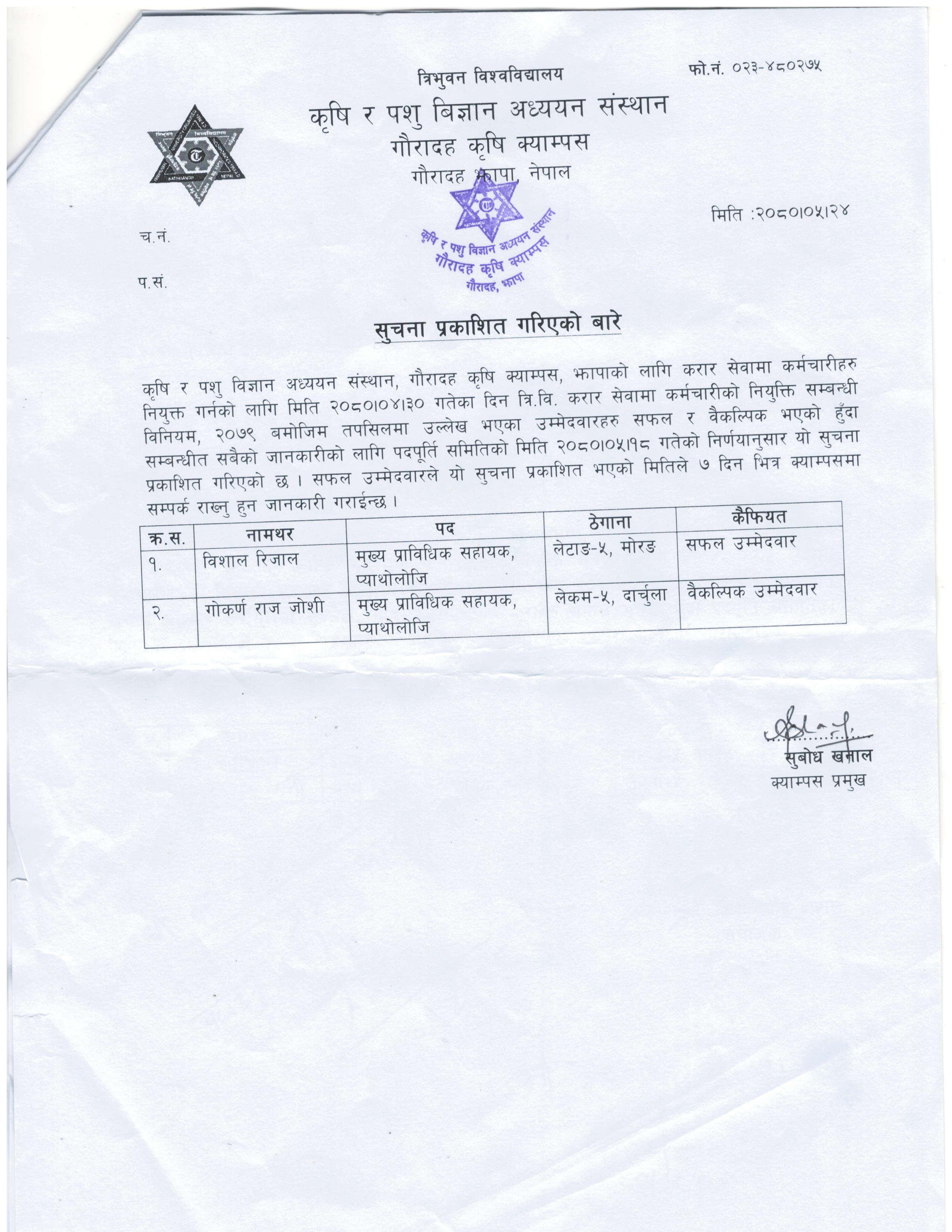 सूचना प्रकाशित गरिएको सम्बन्धमा ।