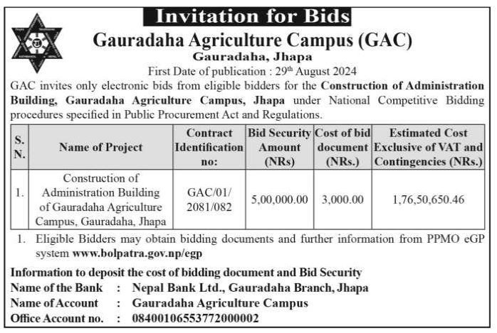 बाेलपत्र स्वीकृत हुने अाशयकाे सुचना ।