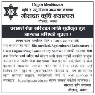 परामर्श सेवा खरिदकाे लागी सूचीकृत हुन अाह्वान गरिएकाे सूचना । Published on Gorkhapatra